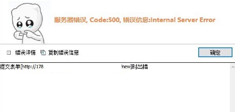 服务器错误,Code:500,错误信息:Internal Server Error