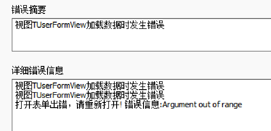 视图TUserFormView加载数据时发生错误