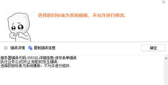 业务公式报错:选择的目标表为系统模板,不允许进行修改