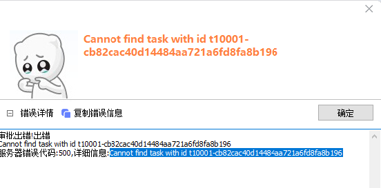 服务器错误代码:500,详细信息:Cannot find task with id xxx