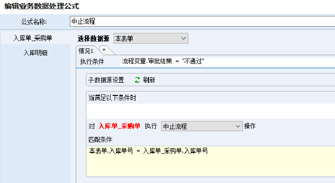 修改业务公式,不要在流程中使用业务公式对流程进行中止
