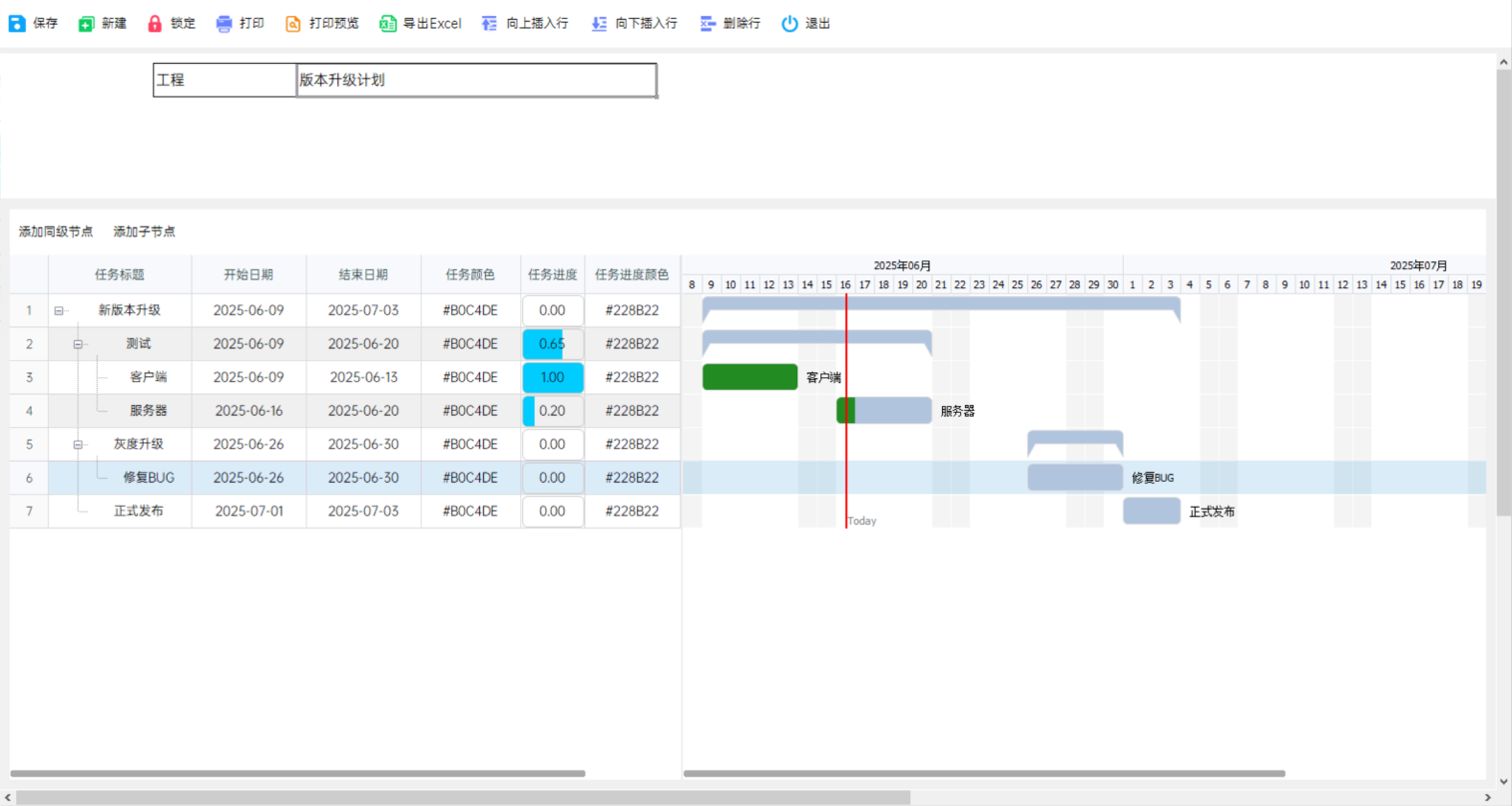 甘特图填写,通过创建同级节点和子节点的方式来插入任务。