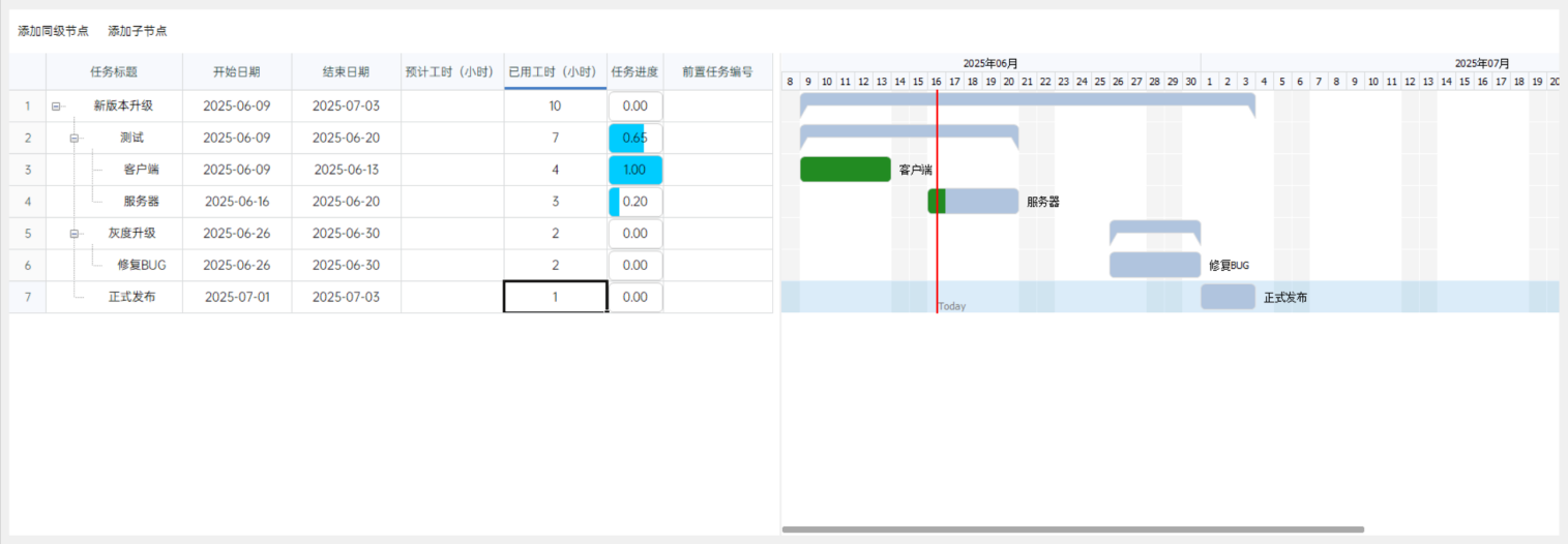 层级结构管理:支持添加同级/子节点任务,构建任务树状结构;