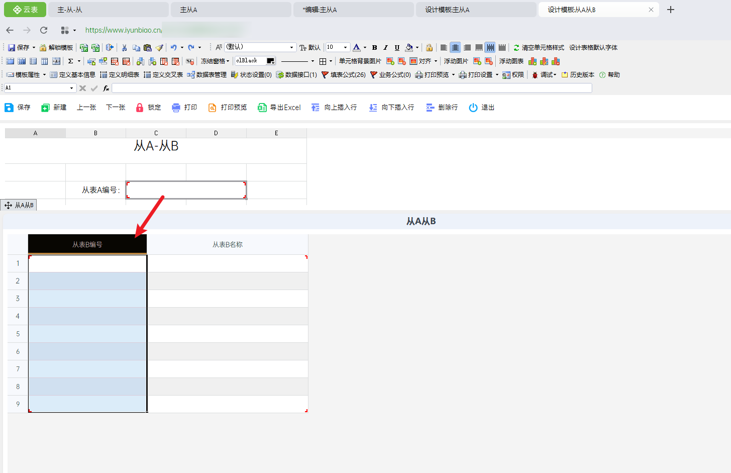 前言:在本次示例中,将采用主表、从表A与从表B来表示三个表格,他们之间的关系为:主表-从表A-从表B