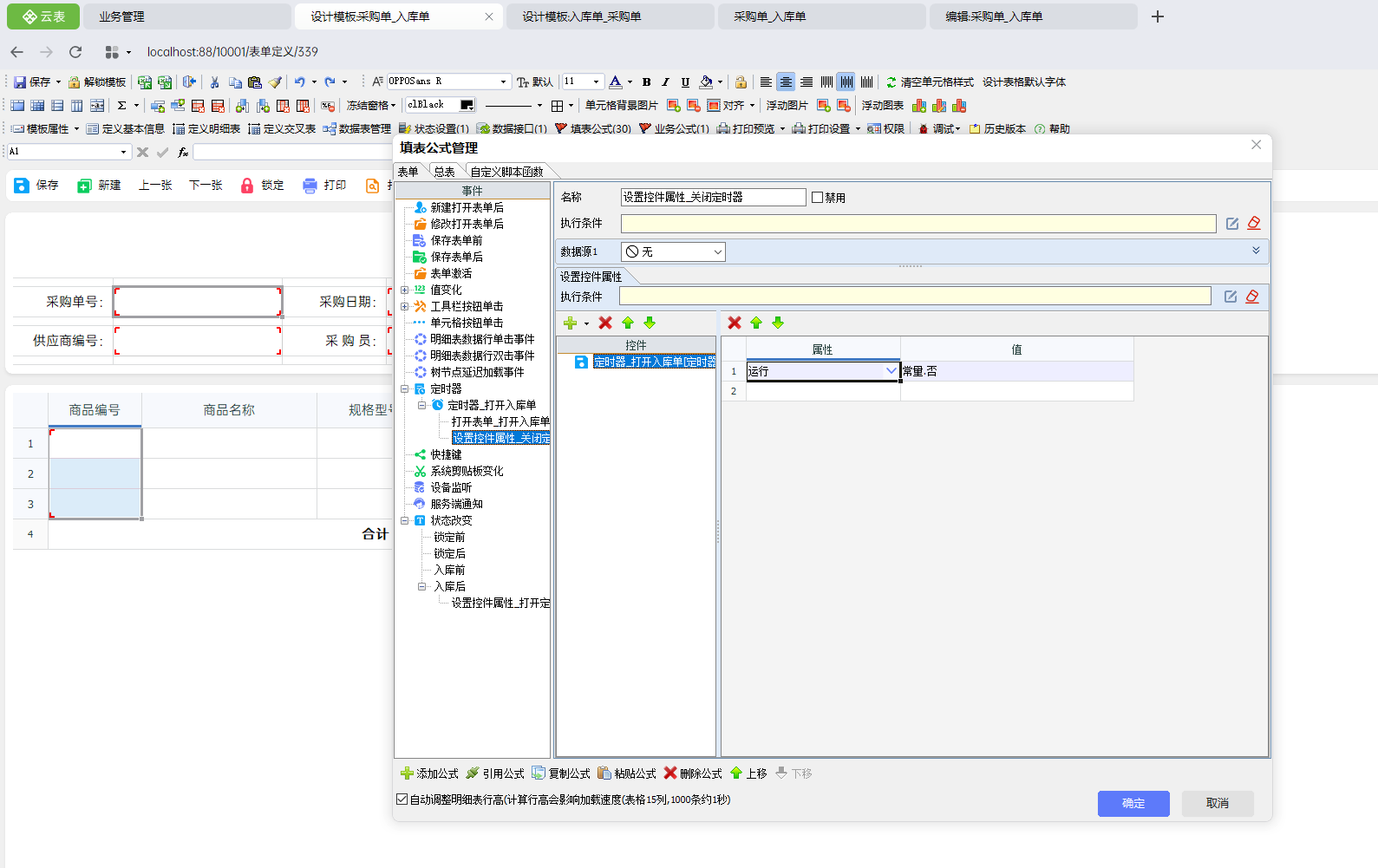 b.在打开表单公式后添加“设置控件属性”,关闭定时器