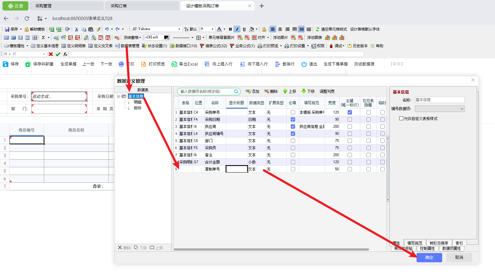 9.2.1 新建打开表单后事件②对于辅助数据项,可以直接在数据表管理中添加数据项,直接添加的数据项不会绑定表格位置,但是在总表中也能看到,根据实际使用需求决定是否隐藏该数据项
