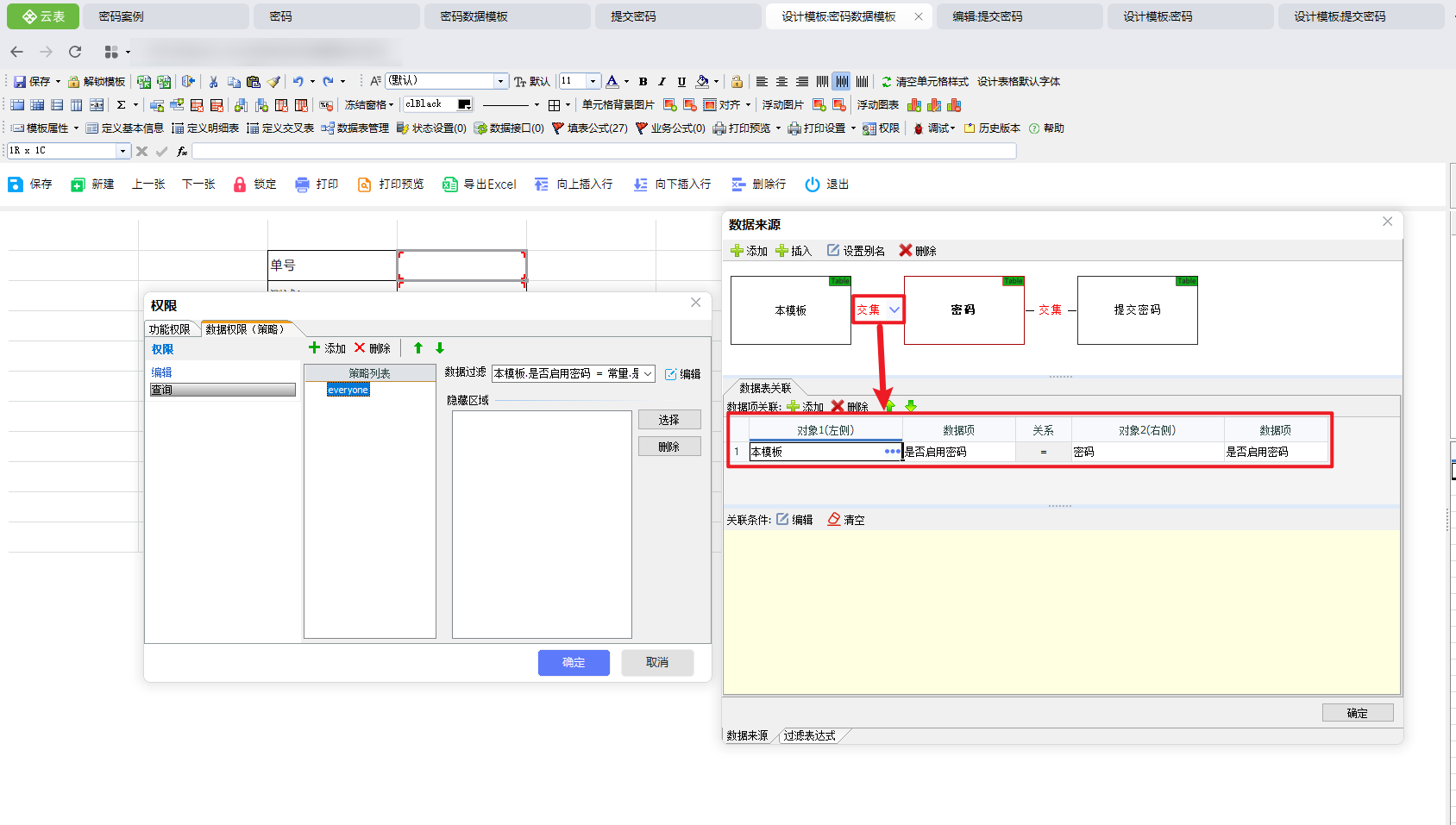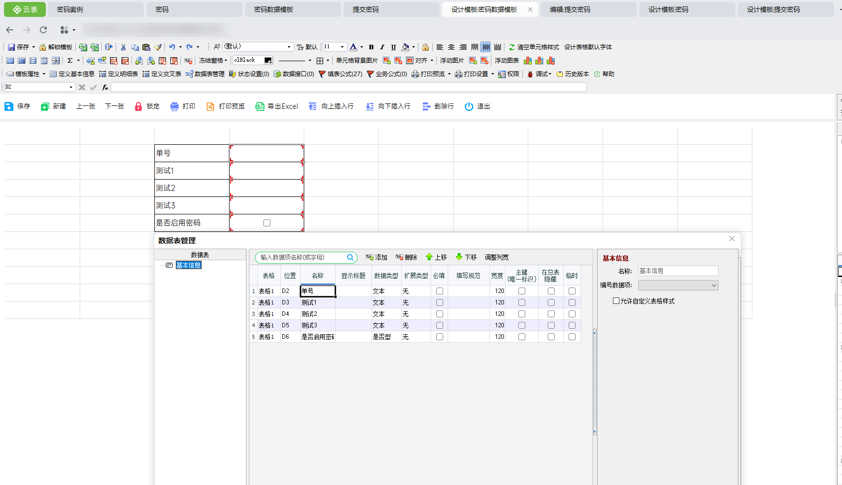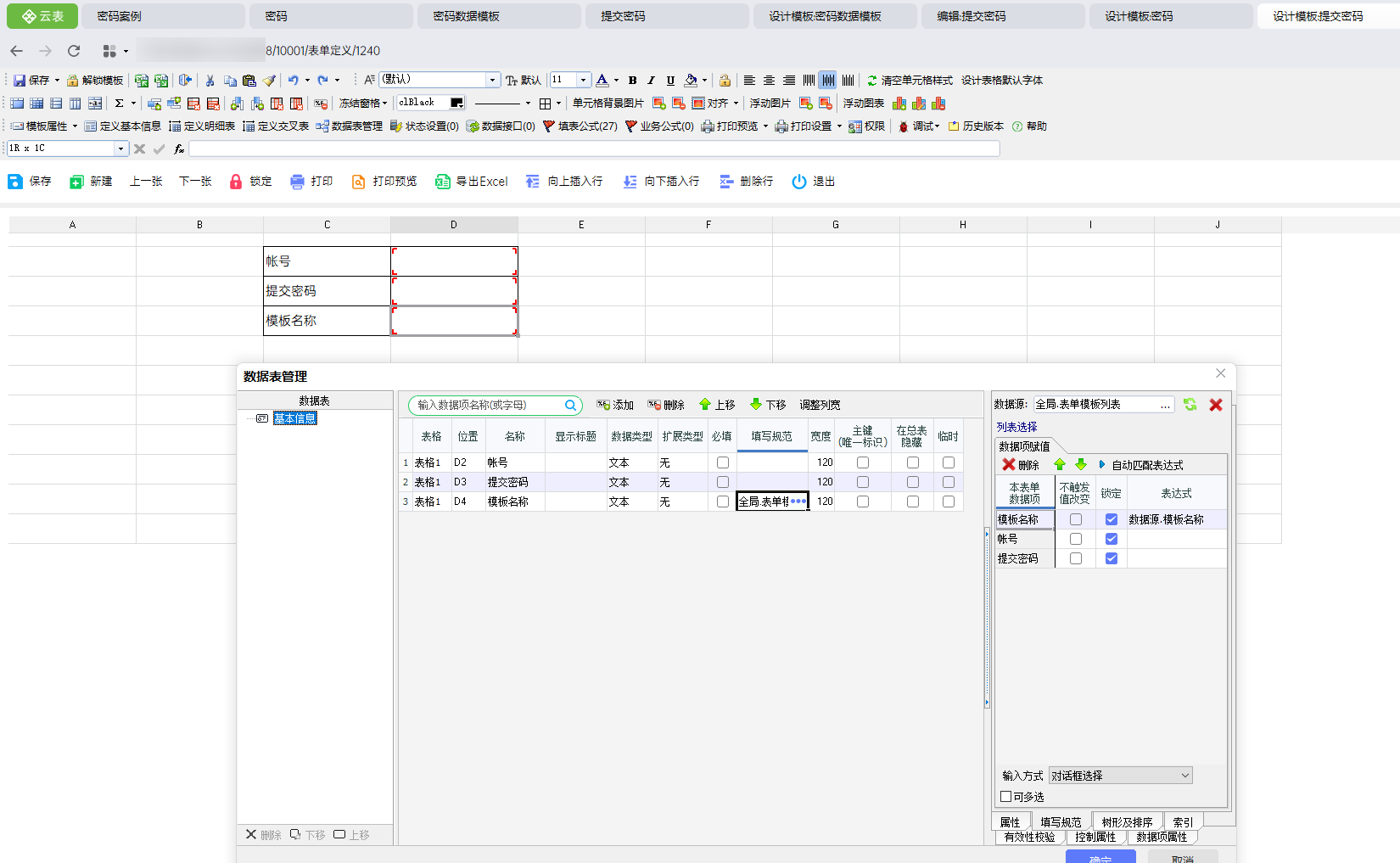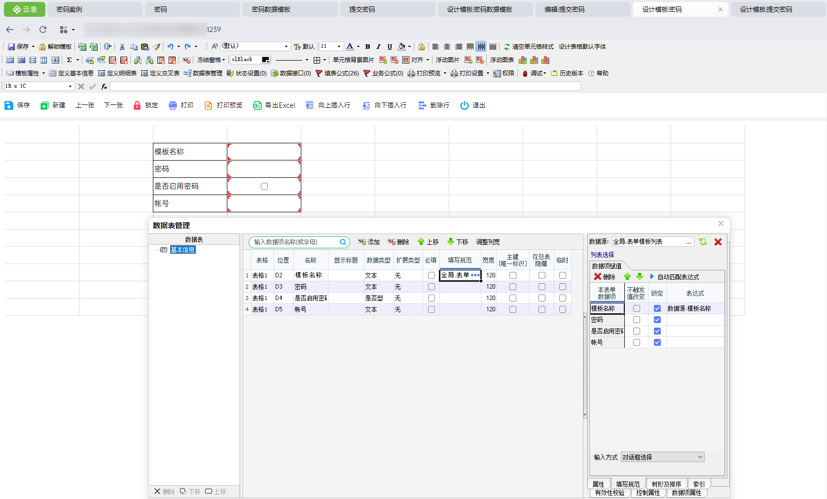 ③设计【密码数据模板】模板,用户最终需要查询的模板(在实际使用过程中,为实际数据模板)