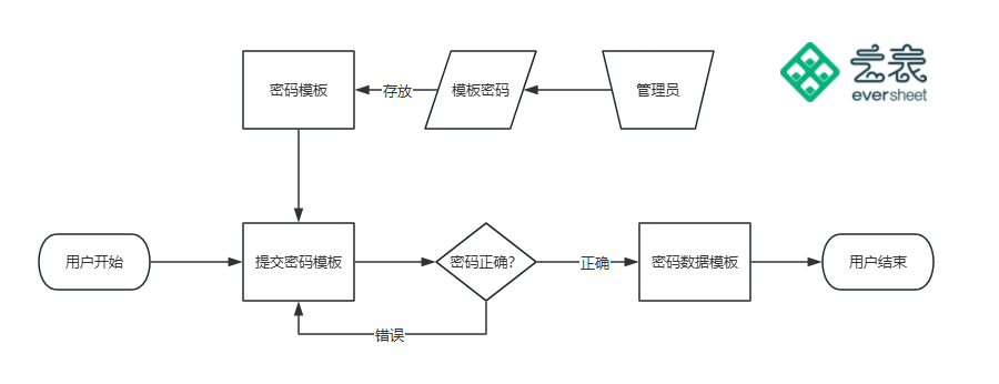 ③密码正确,返回【密码数据模板】,正常查阅数据,密码不正确,则无法查看数据,用户可返回【提交密码】模板,查看填入的信息是否正确