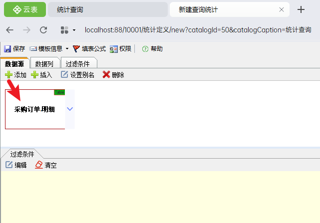 将数据源添加为“采购订单.明细”
