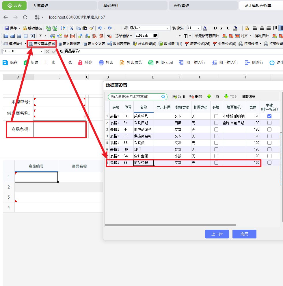框选需要定义的基本数据项,点击定义基本信息,新增定义基本信息数据项