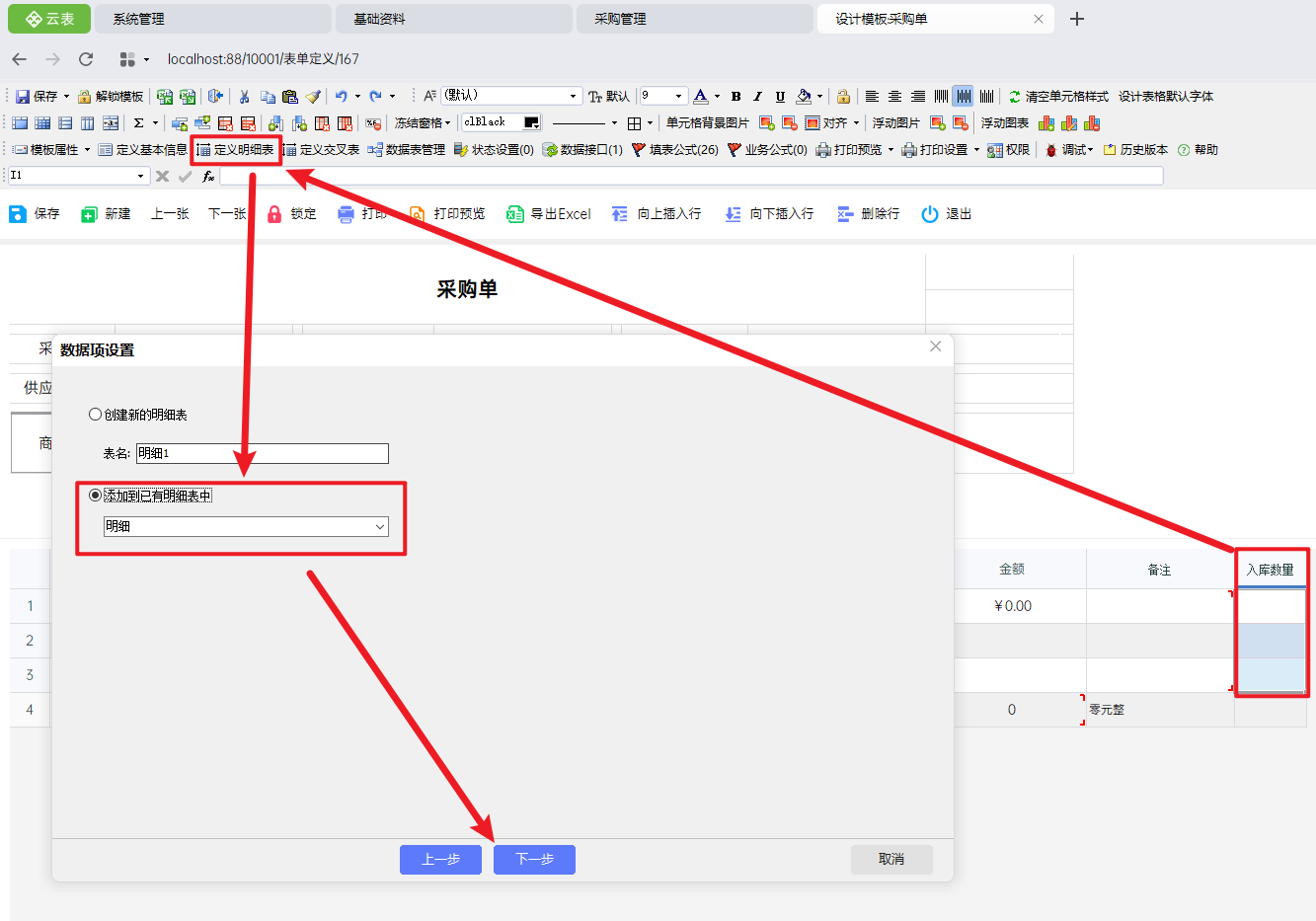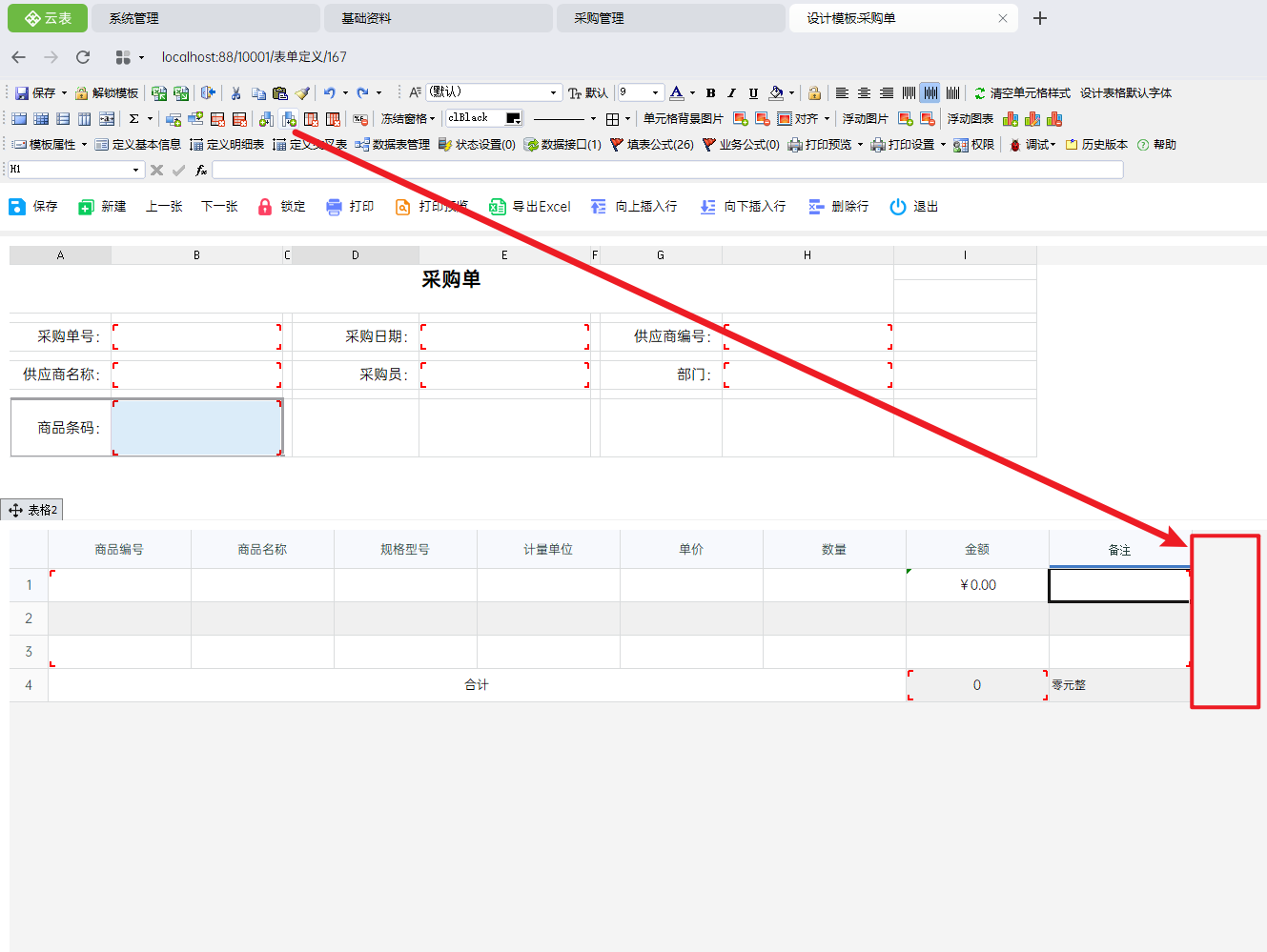 需要新增明细表数据项,但当表格中的位置不够时,可以在明细表后插入一列