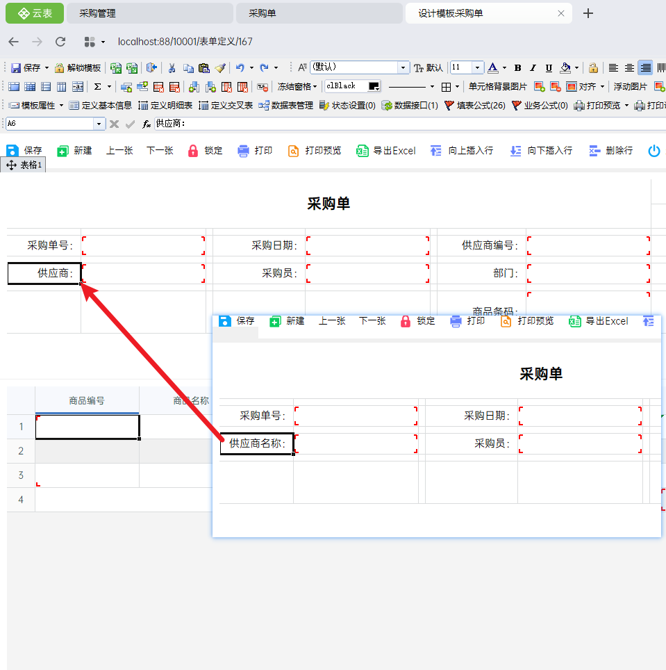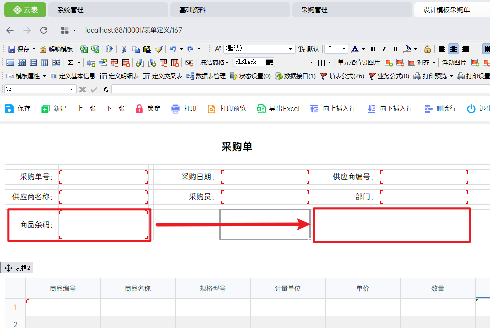 ①与Excel中的操作一样,可以直接在表单页面中拖动数据项的位置