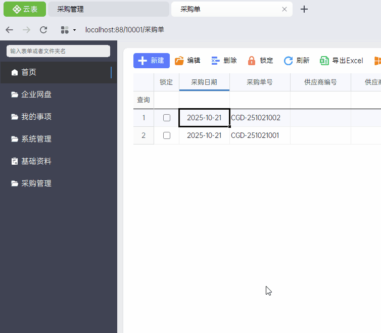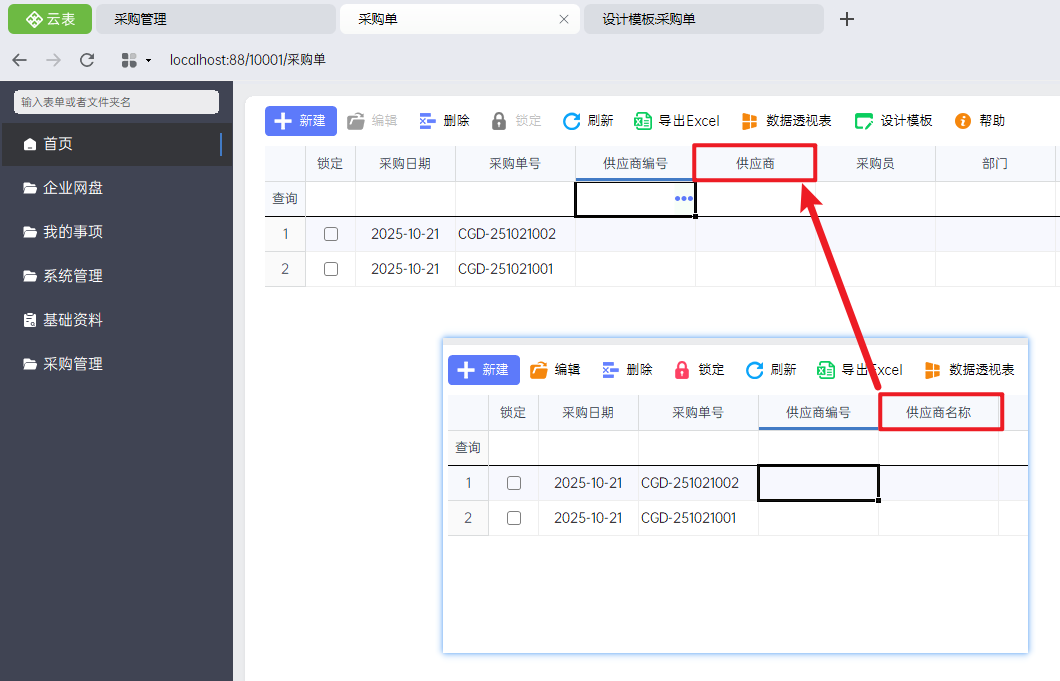 云表企业浏览器能记住用户习惯,用户可以依照自己的使用习惯调整在总表中,数据列的排序方式