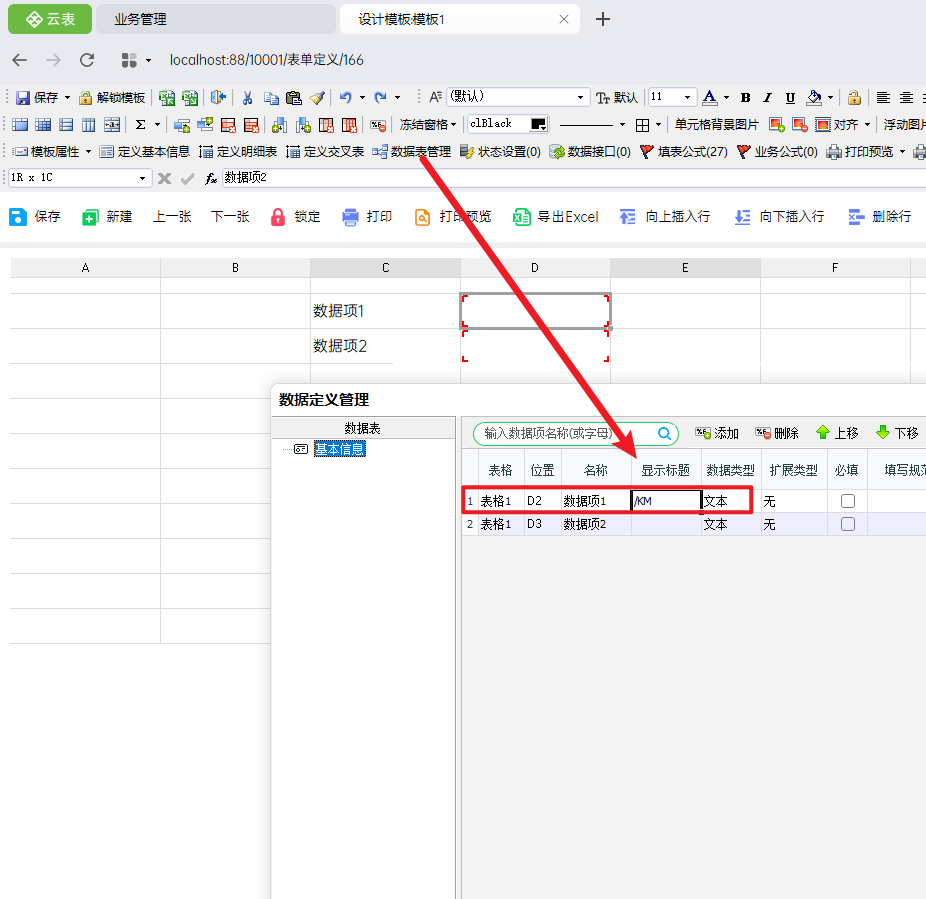 在系统运行过程中,某些数据项的名称,可能需要因为管理等原因进行变动,在云表中,也可以修改数据项的名称