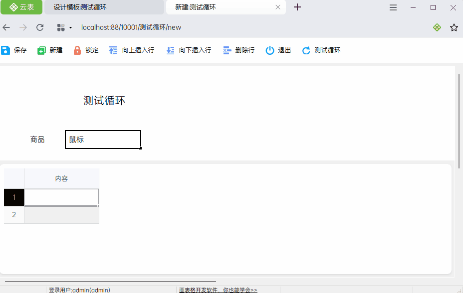 在使用界面填写商品后,单击【测试循环】工具栏按钮,明细有2条记录,弹出4次提示框操作,分别是:鼠标1、鼠标2、鼠标1、鼠标2。