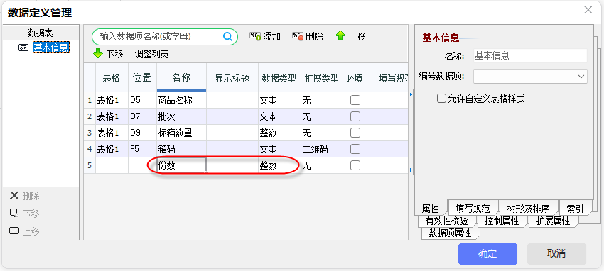 1)一个商品需要打印多份,在“打印模板06”定义辅助数据项“份数”;